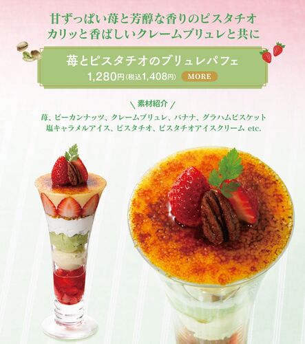 ロイヤルホスト 季節のデザート『苺 Sweet Strawberry 2nd season Pistachio』【苺とピスタチオのブリュレパフェ】