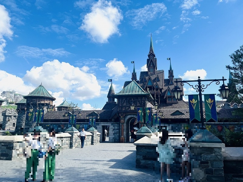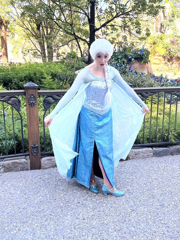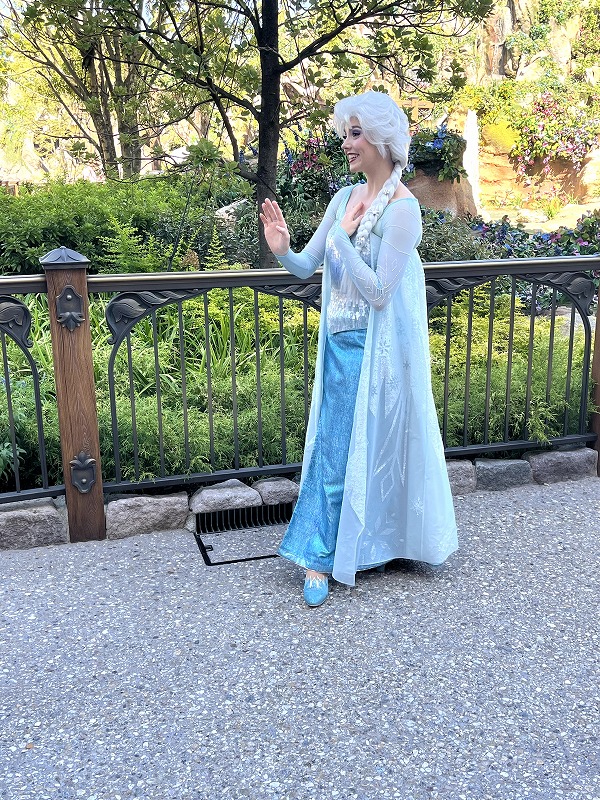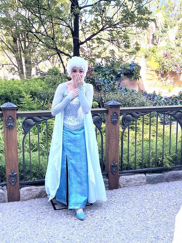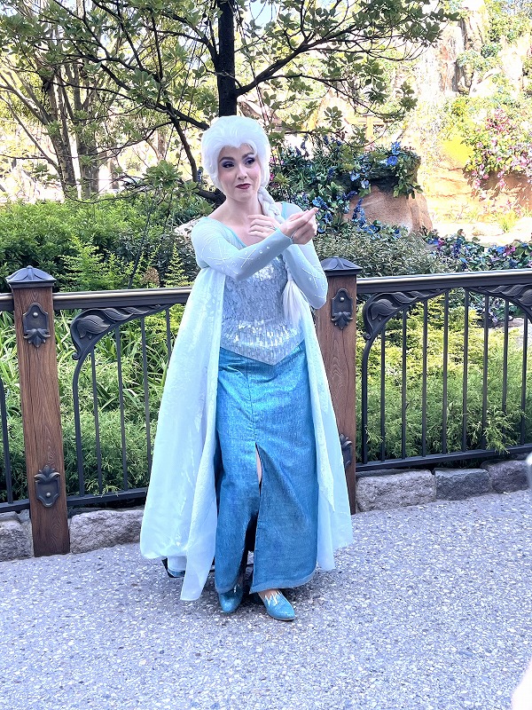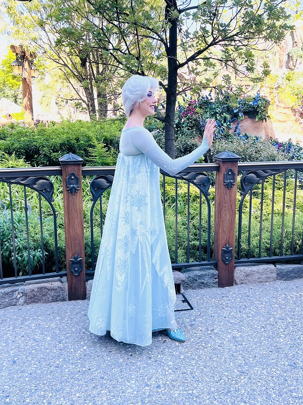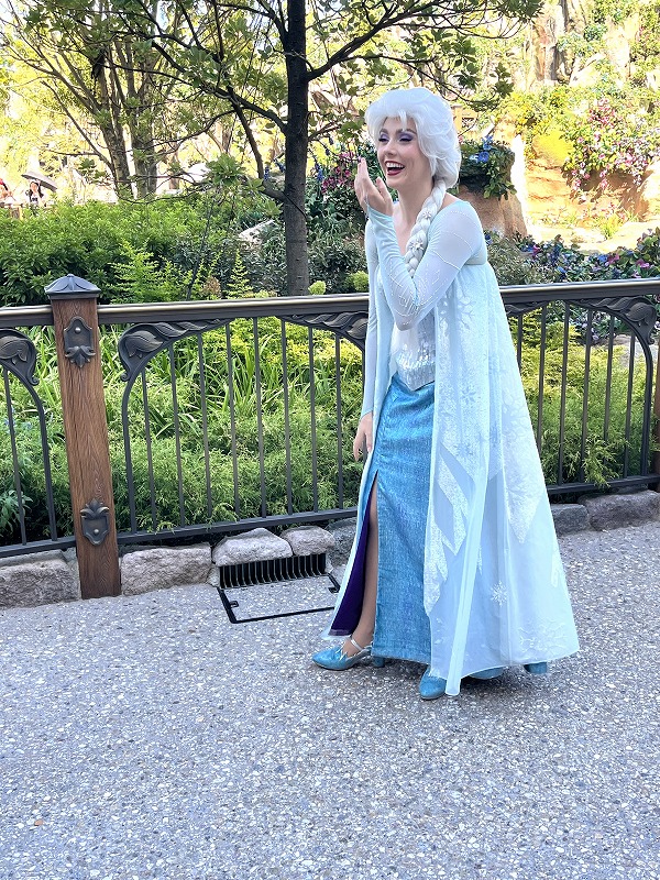 ファンタジースプリングスに戻ったら、エントランス前でエルサとアナのグリーティングが行われてました。