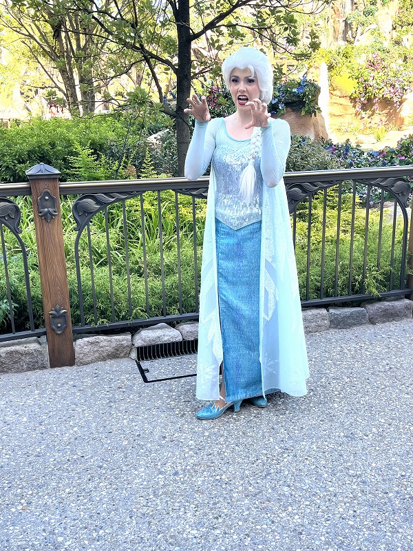 これは一緒に写真撮ってた赤ちゃんがエルサ見て泣いちゃったから、エルサがガオーってやって、自分で笑っちゃってたところ。可愛い。